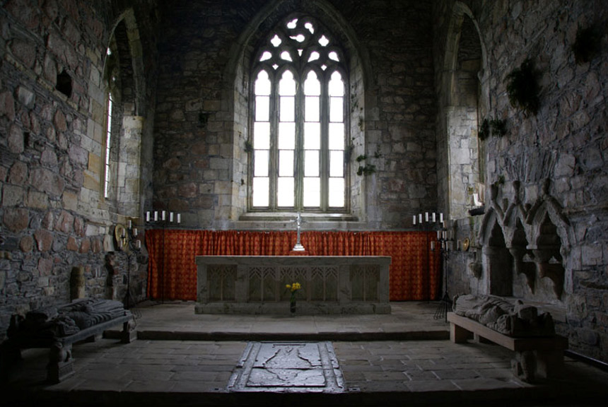 Abadía de Iona. La marca en el suelo podría señalar la localización de las tumbas de varios jefes MacLeod y de uno de los portadores de la famosa Bandera de las Hadas..jpg