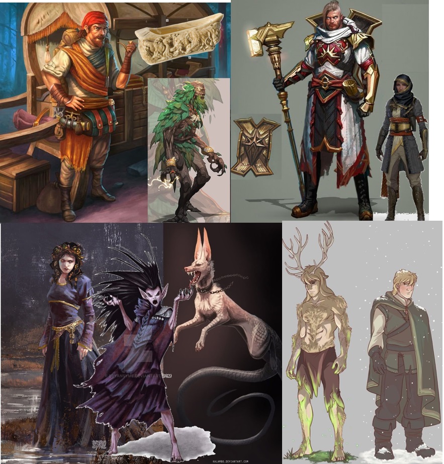 Entre los 4 personajes que podrás escoger tenemos disponibles (todos los personajes tienen apariencia humana y feérica, observa sus fotos más abajo): Representando la Corte de Primavera el Changeling curandero Álvar, el Astado del Ponto, protector de la humanidad. En la Corte de Verano y venido del cielo el orgulloso Caballero Señor Leodegundia de Mustallar, el Artero Infanzón, junto a su amada y esclava Farah (es el único que no tiene aspecto humano con foto pero esto se debe a que su forma humana es igual pero más baja de tamaño y sin los ojos brillantes o las grandes armaduras). Desde la Corte de Otoño el artesano y mercader inanimae de madera de avellano Viator, el Avella Errátil, que cruza los pueblos y ciudades terminando con los artesanos menos duchos. Y en la sombría Corte de Invierno la manipuladora y militante bruja del lago, Luar, el Ocelo Astral, el ojo y resplandor vigilante de la Luna. Sus fichas están disponibles en el foro de Webvampiro o se las podéis pedir a su narrador directamente.