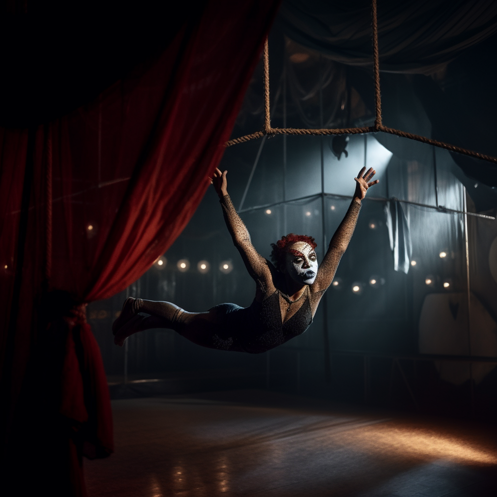 Íkara siempre lleva su rostro tapado con una máscara para disimular unas deformidades que no acepta, ya que era una joven muy bella. Cuando no tiene que atender a una representación aprovecha para escabullirse por la ciudad en la que esté en ese momento el circo instalado para satisfacer su curiosidad o traficar con objetos maravillosos y secretos inconfesables.