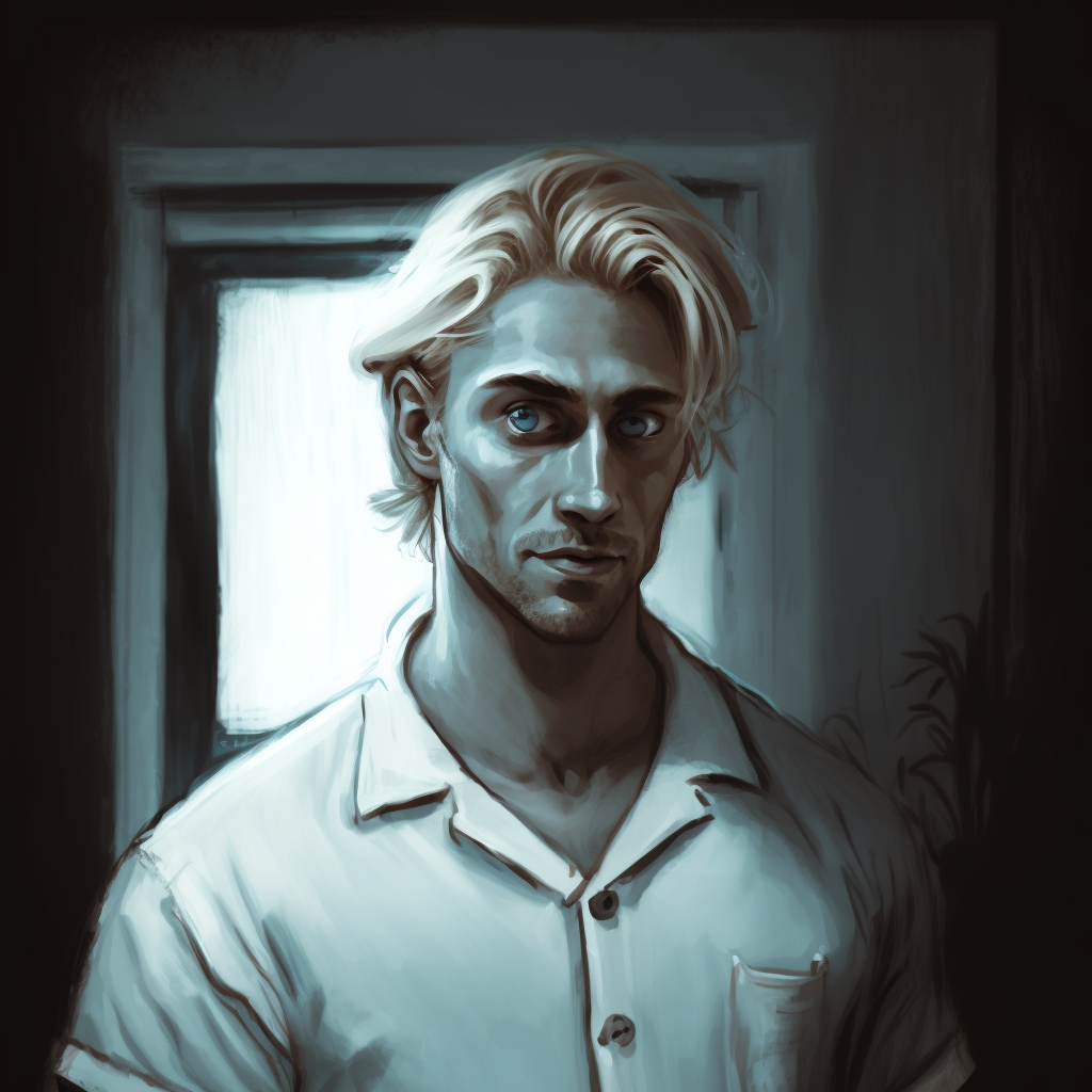 Michael es un hombre atractivo, rubio y de grandes ojos azules, de unos veintipocos años. Viste con un uniforme blanco de enfermero, procurando pasar desapercibido entre el personal del asilo, y al mismo tiempo alerta ante cualquier problema, considerando que el lugar y sus internos se encuentran bajo su protección.