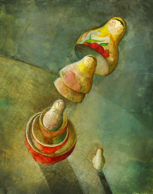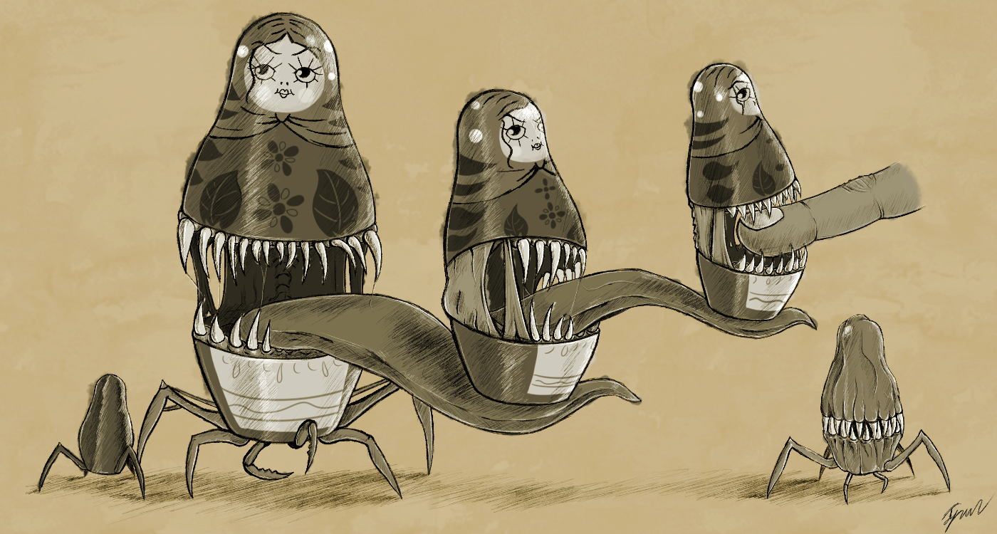 Pero así como hay juguetes que sirven para divertirse también los hay que están hechos para educar, como es el caso de las terroríficas Bábushka. Una historia que se cuenta entre los Sluagh, que es en realidad un secreto, cuenta, que una de las formas más tenebrosas y clásicas de que los niños aprendieran una importante lección era dejando una de estas al borde o pie de sus camas. Con frecuencia para ellos lo más intrigante realmente no era el descubrir el asombroso efecto de este juguete sino preguntarse cómo había llegado hasta el propio borde de sus camas durante la noche.