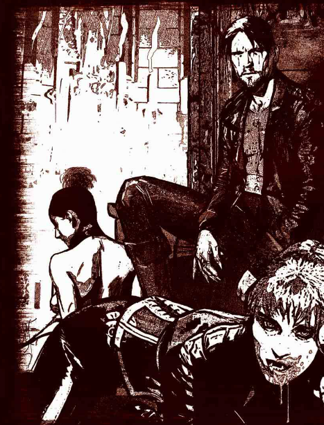 A mí las portadas de los capítulos me gustan mucho, pero reconozco que soy un incondicional de Bradstreet, me gusta todo lo que dibujaba ese hombre y las de Réquiem para mí le pillan en una buena época. Las portadas de los capítulos, concretamente, me parecen todas muy buenas. Y la maquetación y sangría de las páginas me gusta muchísimo. En el documental de Mundo de Tinieblas, Bradstreet contó que se sintió plagiado con Blade, que se parece mucho a sus assamitas, así que contactó con ellos y en las siguientes películas fue director artístico de la saga, al menos en la segunda.