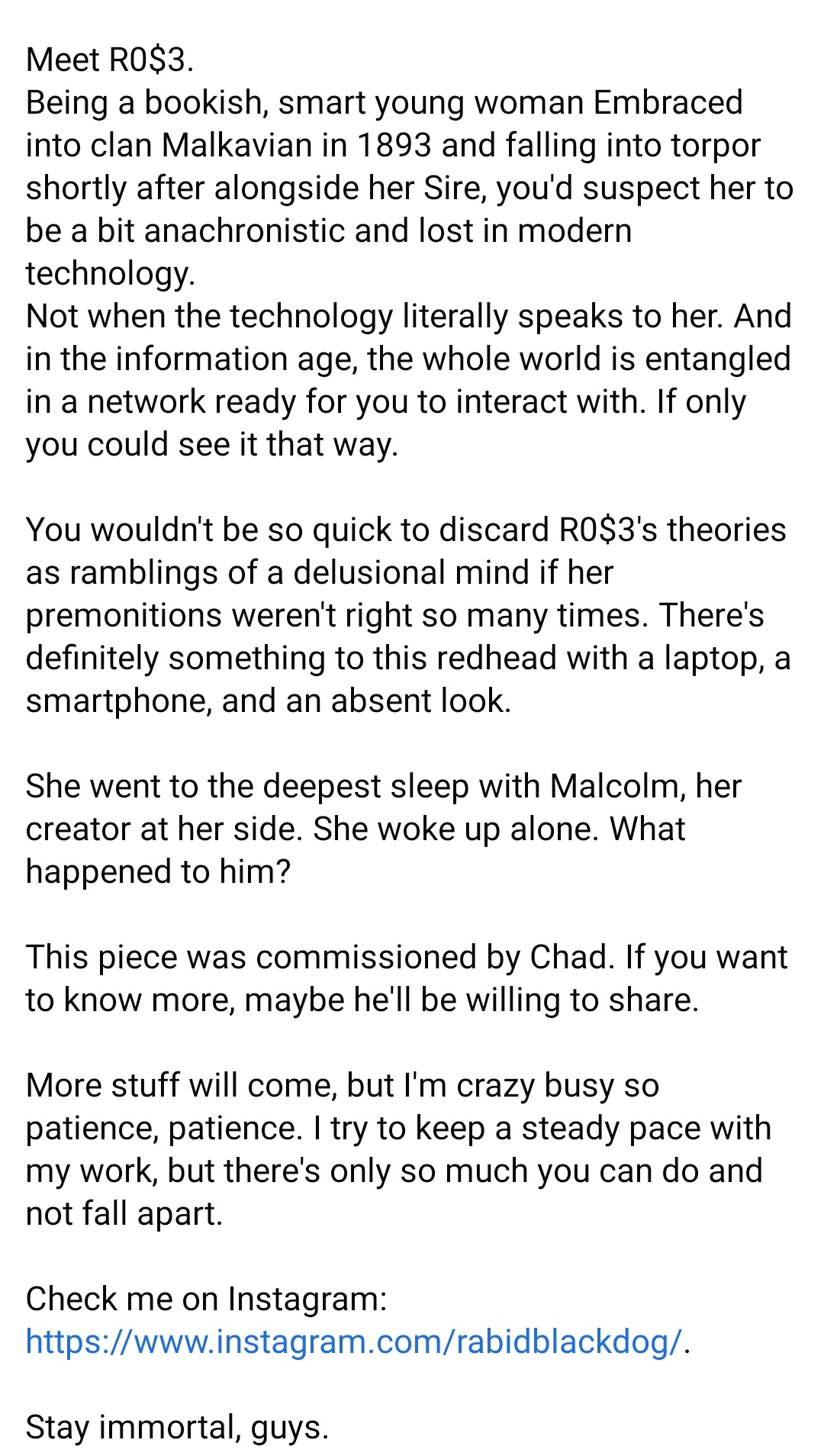 Malkavian de Rabidblackdog. Dejo debajo el trasfondo que él mismo ha posteado (es un dibujo por encargo).