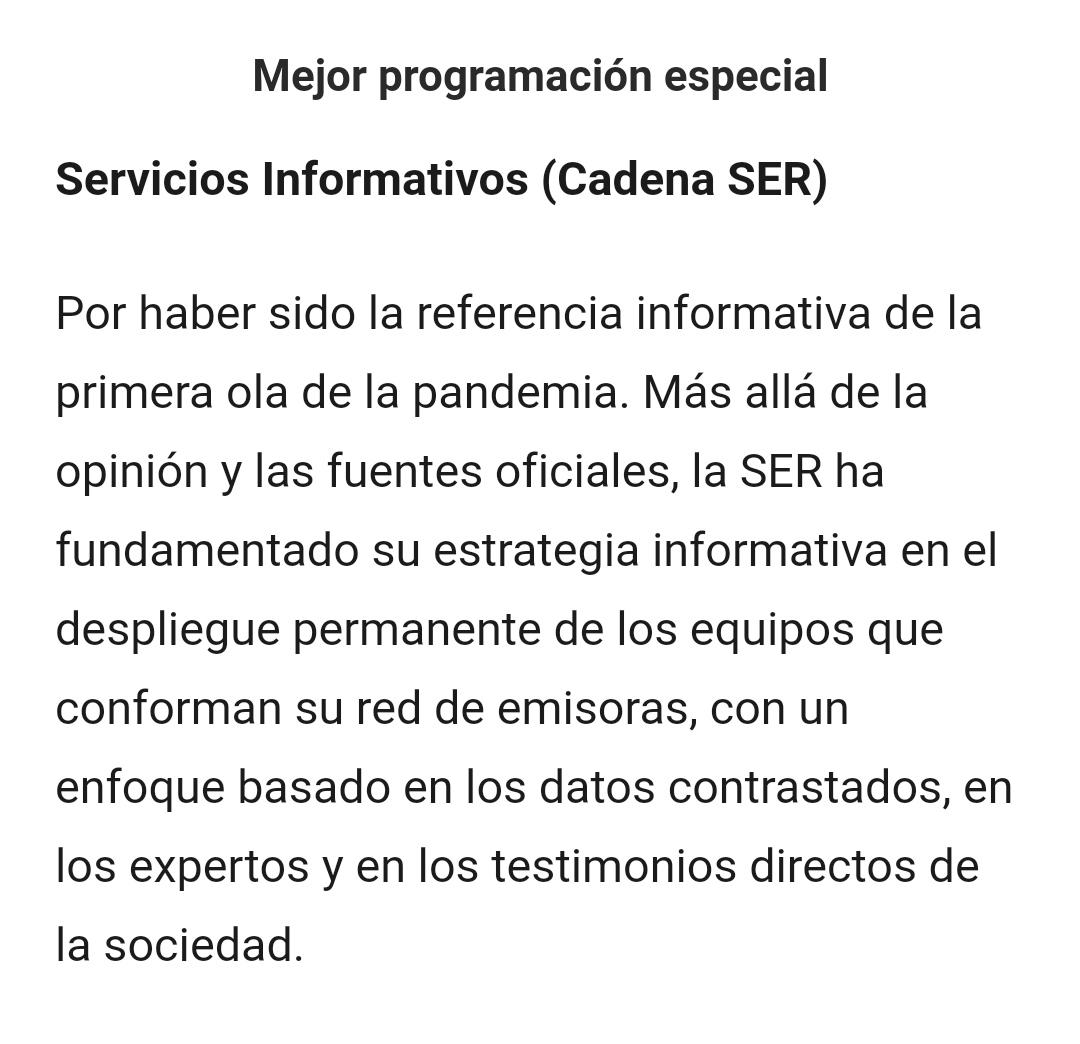 Suelo pasar de estas cosas, pero bueno, estar en un trocito de este premio Ondas hace ilusión.