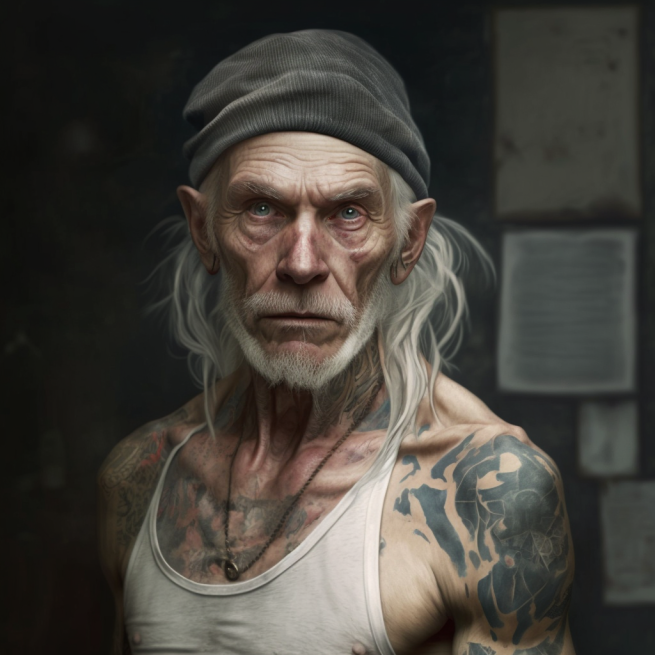 Desmond tenía cerca de sesenta años cuando fue Abrazado. Es un individuo de estatura media, ligeramente encorvado y delgado, aunque con algo de barriga cervecera. Sus brazos blancos y delgados están llenos de tatuajes. Tiene largo cabello rubio casi blanco, y siempre lleva un gorro de lana para disimular que se ha quedado calvo en la coronilla. En su rostro destacan sus ojos son grandes y azules y siempre están cargados de un loco nerviosismo en un rostro blanco, huesudo y mal afeitado. Viste con ropa informal y juvenil mezclada con estética punk de hace décadas que le da un aspecto extravagante, y si alguien le dijera que le queda mal posiblemente se enfadaría.