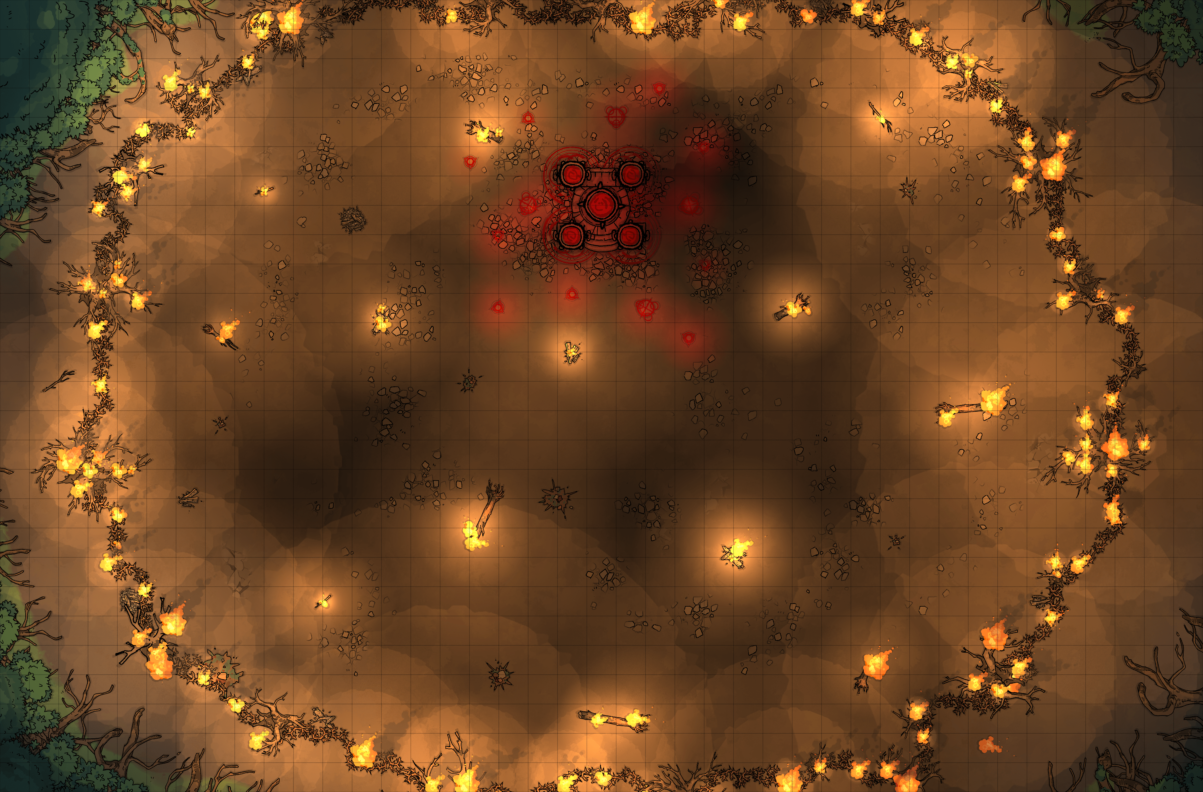 Les adjunto unos mapas que encontré que me gustaron para esta aventura. La del encuentro con el cazador la escogí estratégicamente, en teoría o bien es una zona donde los jugadores podrán encontrarse a patrullas de bomberos llegando a estas zonas del bosque y tienen que tener cuidado con el tema de inducir el delirio o dejar alguna que otra prueba o simplemente es una zona del bosque parcialmente quemada lo suficientemente grande para agregar trampas para el encuentro con Tomás. Por otro lado el encuentro con el Gaitero estará guay también en ese círculo de fuego. La guarida del oso es por si el personaje de Héctor quiere hacer uso de su cueva, que la tiene en su trasfondo. Los jugadores podrían querer usarla en algún momento para esconderse si se han quedado sin refugio o para planificarse en intimidad.