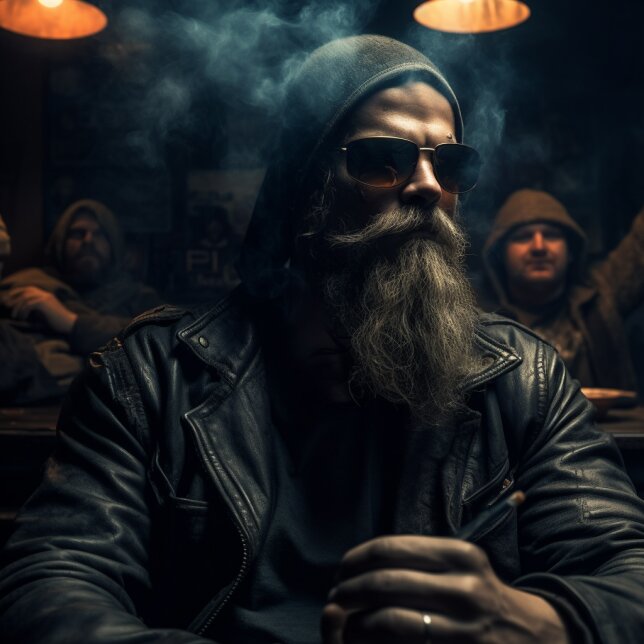 El humo de los cigarrillos, los porros y algún puro que se están fumando los miembros de la banda de moteros comienza a convertirse en una densa nube. Nyx aguanta la mirada del gigantón que tiene delante, que permanece inexpresivo. Al Brujah no le cuesta imaginarse que un tipo así es de los que está acostumbrado a mover un dedo y ver cómo caen sus enemigos delante de él. No todos los líderes que intimidan están en altos rascacielos o en tronos nocturnos.