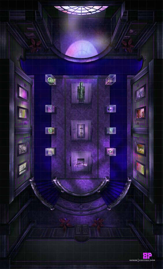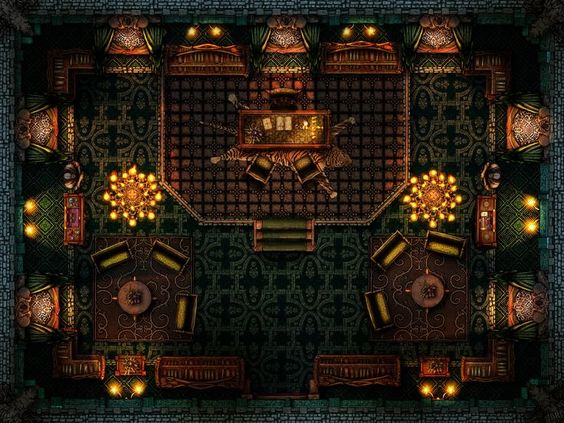 Estos son los mapas que usé en la aventura, creo que no están mal pertenecen a la pinacoteca, la academia de arte, el reform club y un despacho del reform club, el piso de Edward, el salón de la mansión de Adam, el fumadero de opio, el almacén que era una trampa y una azotea en una torre trasera al negocio de Vishanti & Sons (me gustó ese mapa para dramatizar la acción allí arriba xd).
