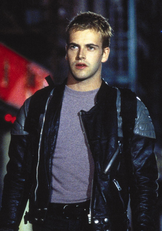 Chaqueta de cuero con gorro. Unos Levis bastante usados, una camiseta del personaje de cómic "the punisher", cinturón de cuero, deportivas negras.